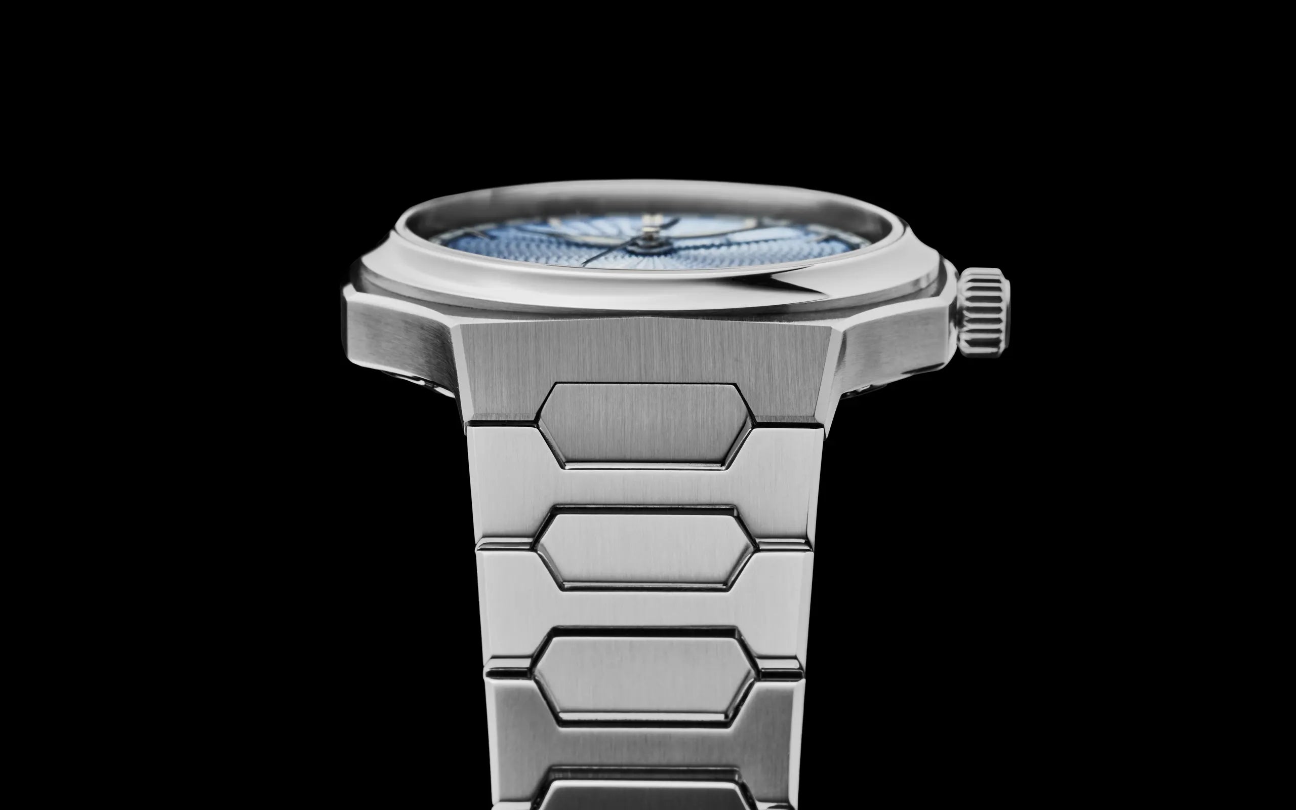 The quality of Perception’s material properties is further enhanced by the elegance of its dimensions, tapering across both its width and height — from 22mm and 3mm at the case/lugs, respectively, to 18mm and 2.6mm at the clasp. These dimensions make for an exceptional fit, conforming to any wrist size to the highest degree of comfort.