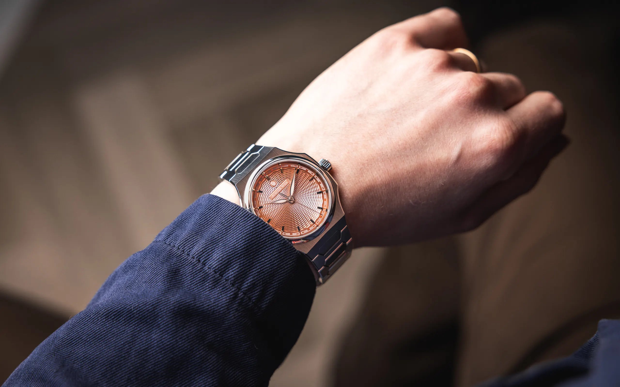 The bracelet that you see on Perception today has been markedly refined from the one that originally made its appearance on the first iteration of Perception. The gleaming chamfers were previously absent from the edges of its links, and the dimensions slightly less refined in their thickness, taper and alignment. Even the hidden micro-adjustment button on our clasp has been given a reworked texture.