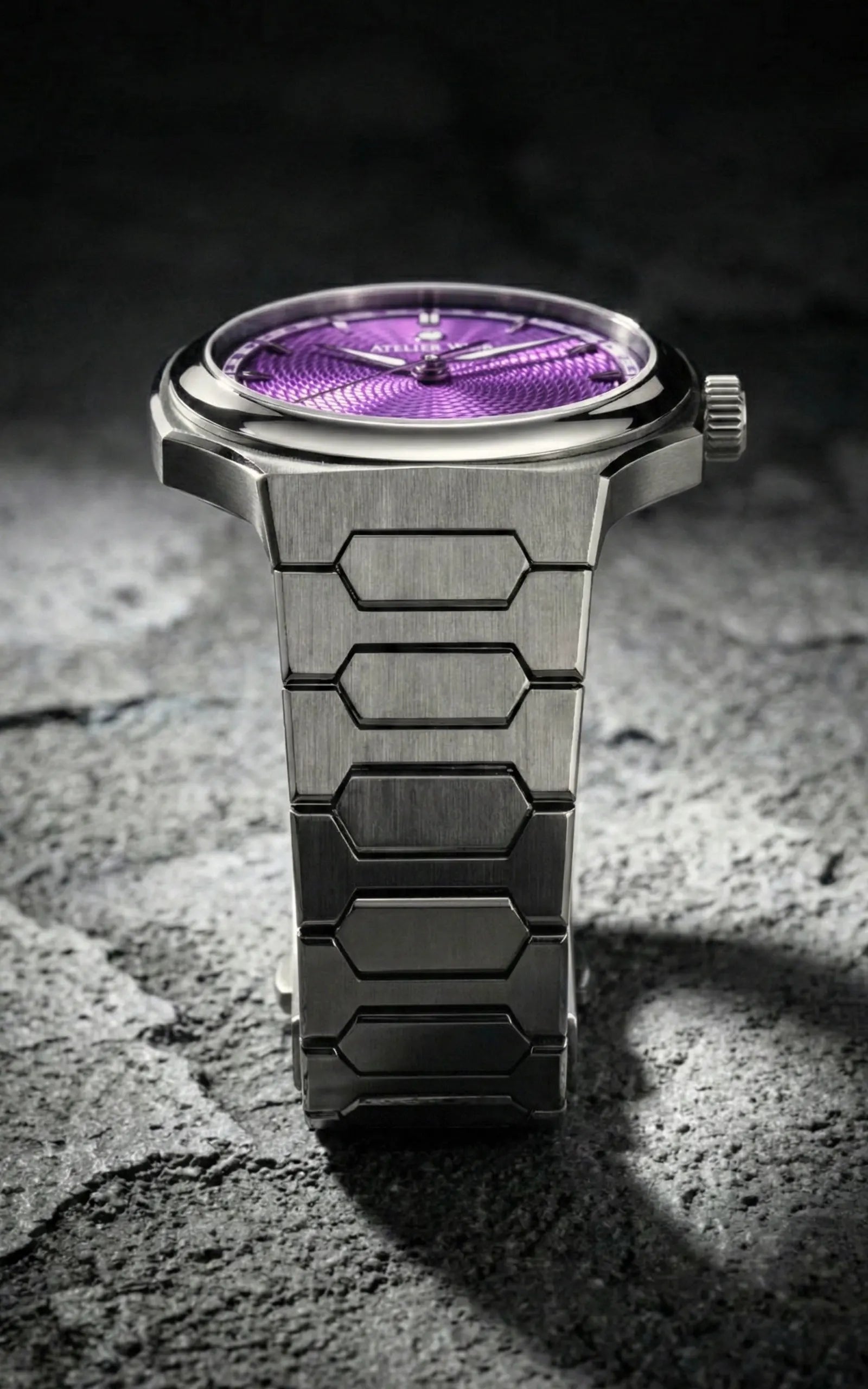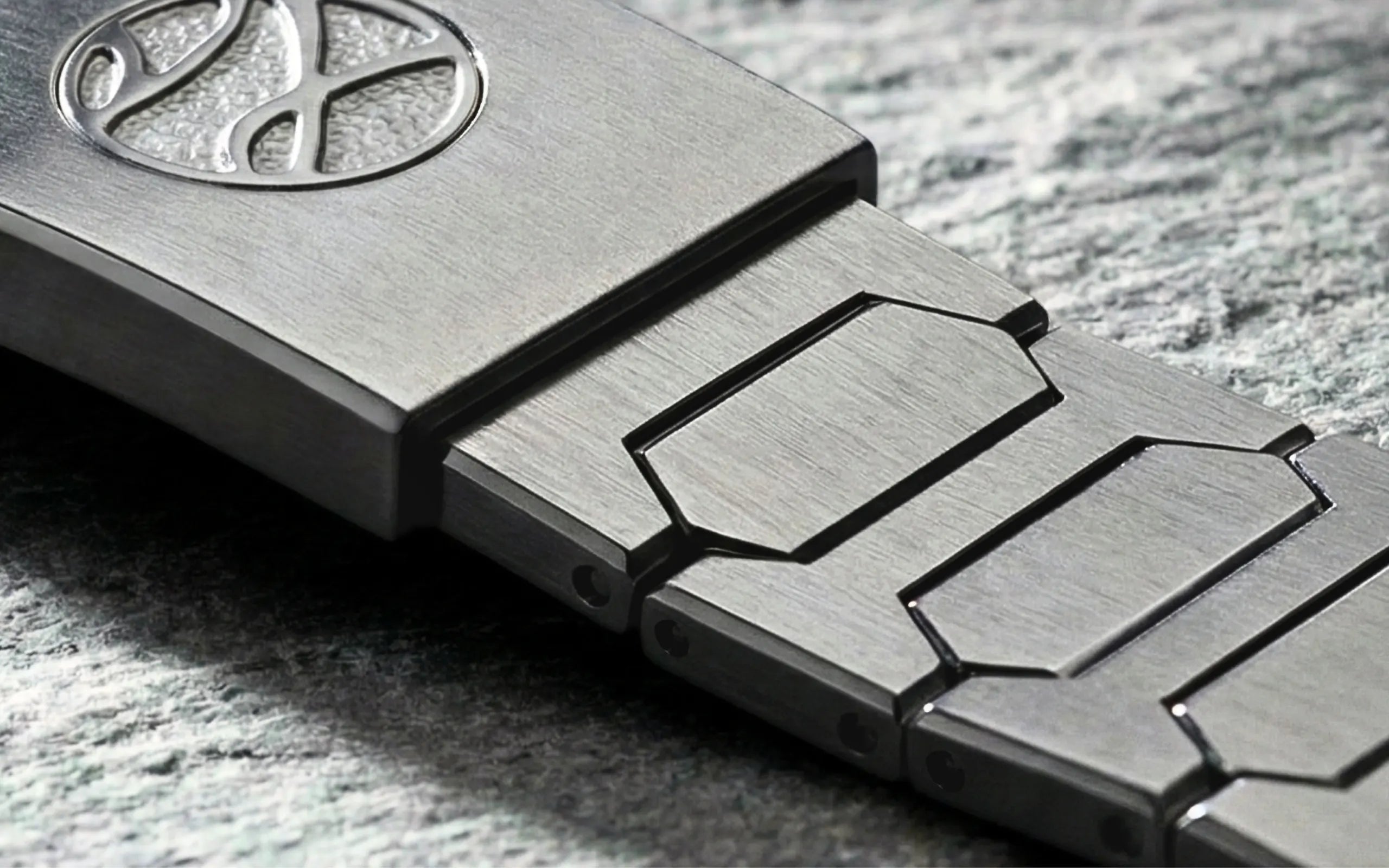 Grade 5 titanium was specifically selected due to its ability to take on polish, complementing the material's natural subtlety with the lustre of its chamfers. The material's hardness makes it significantly more challenging to machine and polish than steel, demanding a greater degree of skill and time to achieve its final form. This unique characteristic has led to it being sought after for its prestige and exclusivity in the watch industry.