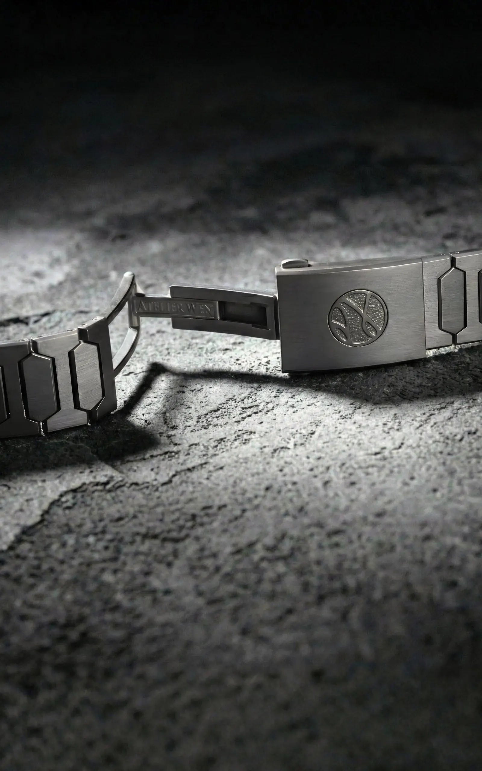 This hidden mechanism allows the clasp to remain extremely sleek, and yet no less intuitive and satisfying to use, in-line with our aim of a seamless experience in utility. The bracelet's length may be adjusted by up to a half-link without it ever leaving your wrist.